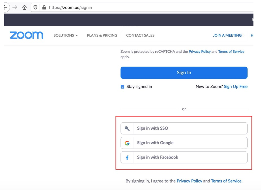 (This means that you don't need to create a Zoom-specific account unless you'd prefer to do so)- Note: sign in with SSO is only for people from companies who've have arranged to have Zoom accounts for their employees.