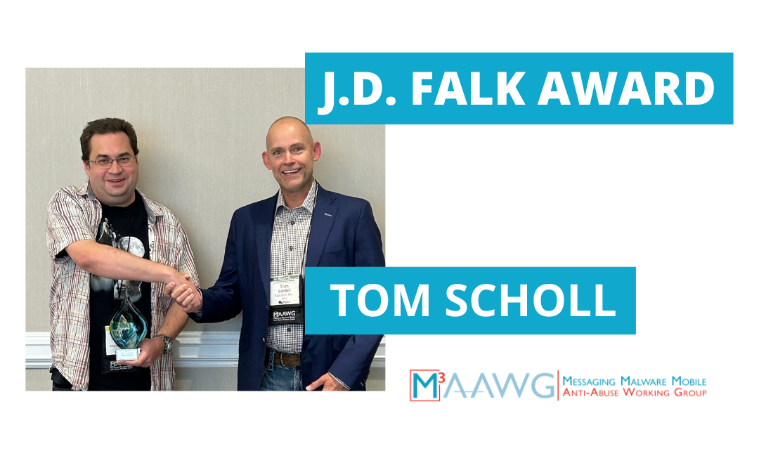 Anonymous (not verified) 26 October 2023 Legacy Id66560TemplateTwo columns with imageOn Home PageYesMembers HomeNoURLhttps://www.m3aawg.org/blog/2023JDFalkAward-TomSchollCaptionTom Scholl Receives J.D. Falk Award 2023Highlight Image Image Background